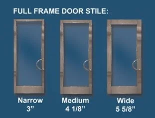 - Full Framed Door Stile: 3” narrow, 4” medium or 5 ½” wide